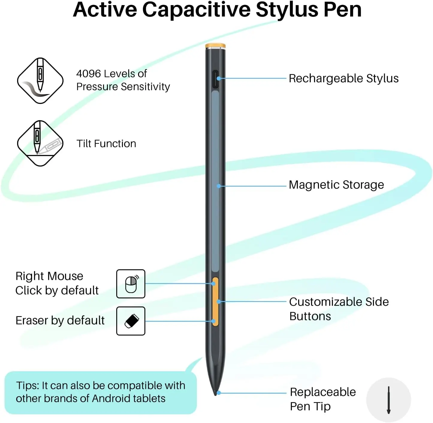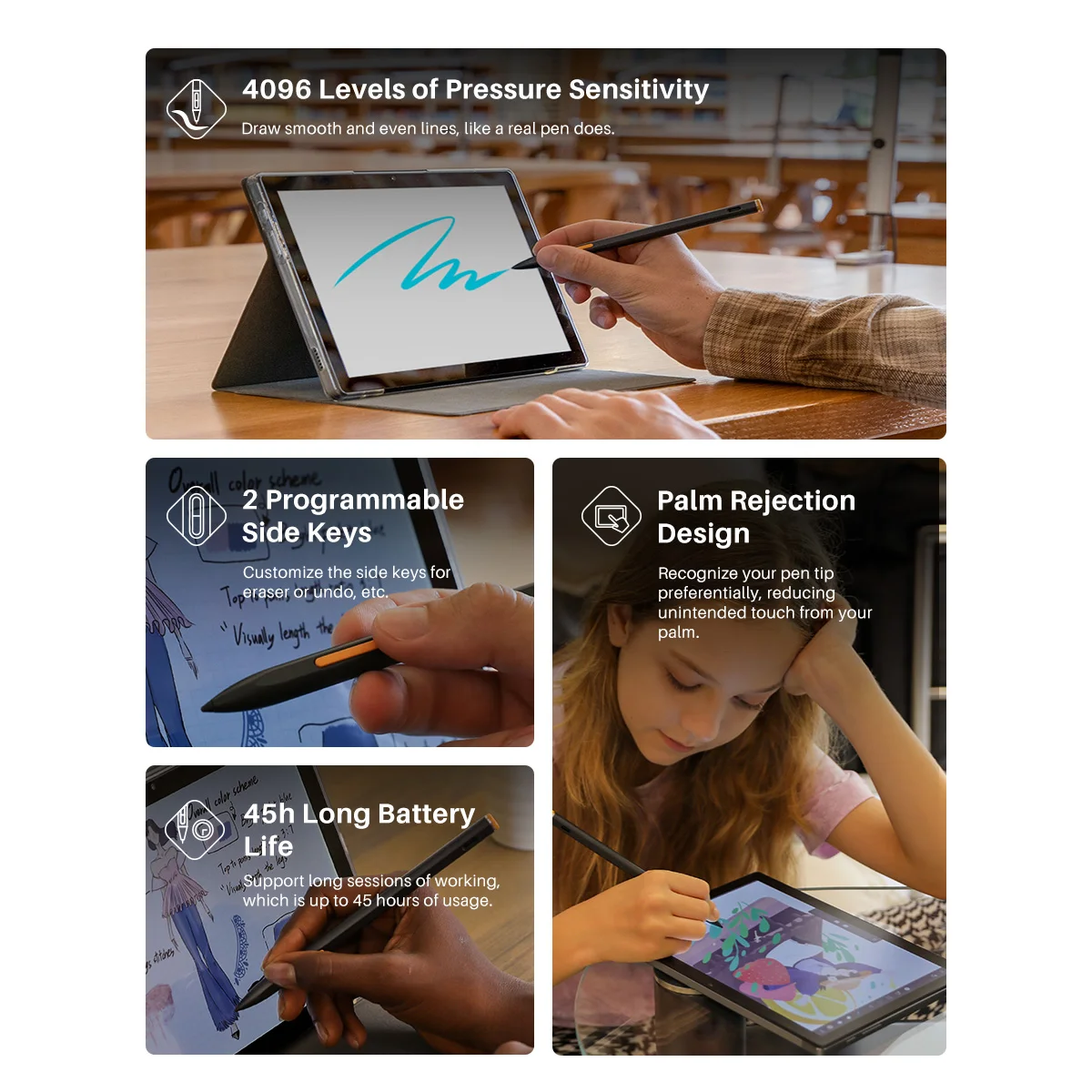 With 4096 levels of pressure sensitivity, the stylus pen accurately captures the pressure exerted during writing. This feature enables you to adjust line thickness as if using an actual pen, enhancing your creative experience.