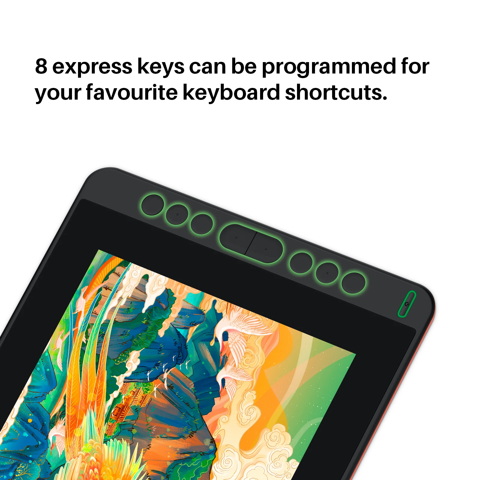 Stop hunting for shortcuts mid-session. Assign your most used actions to the 8 programmable press keys for quick access to tools like brush size, undo, zoom, rotate, and more.