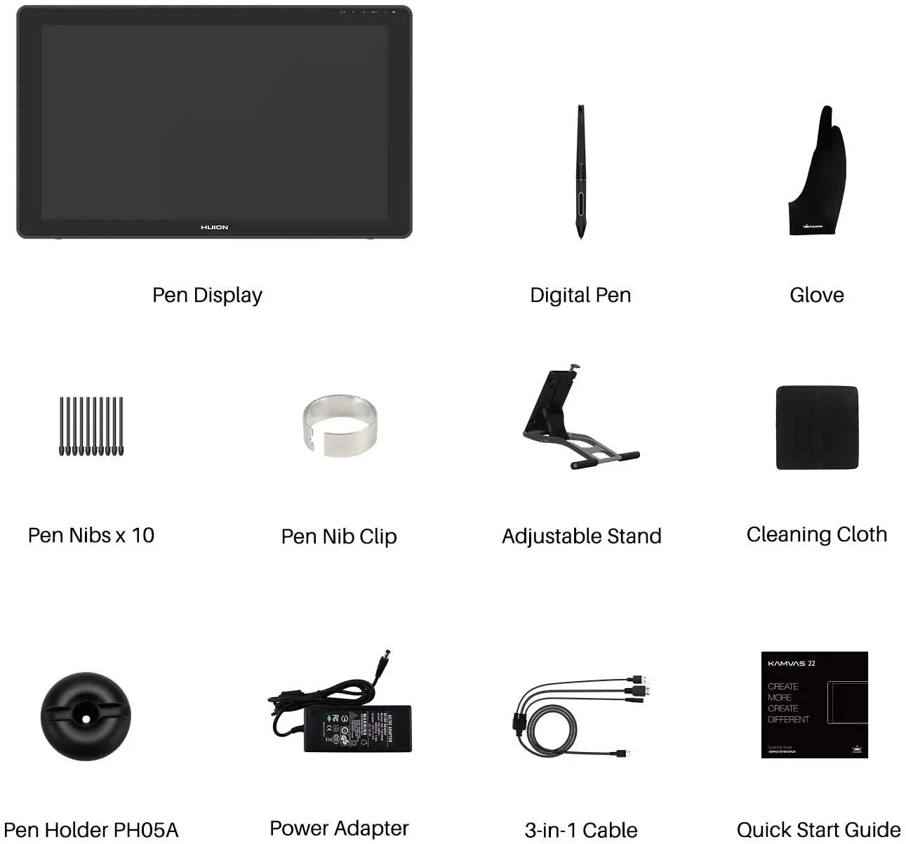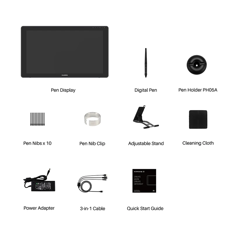 The 21.5-inch screen with 120% sRGB color gamut and 16.7 million colors delivers vivid, natural-looking visuals. With a 1000:1 contrast ratio, Kamvas 22 creates a more immersive viewing experience while you draw, edit, and create.