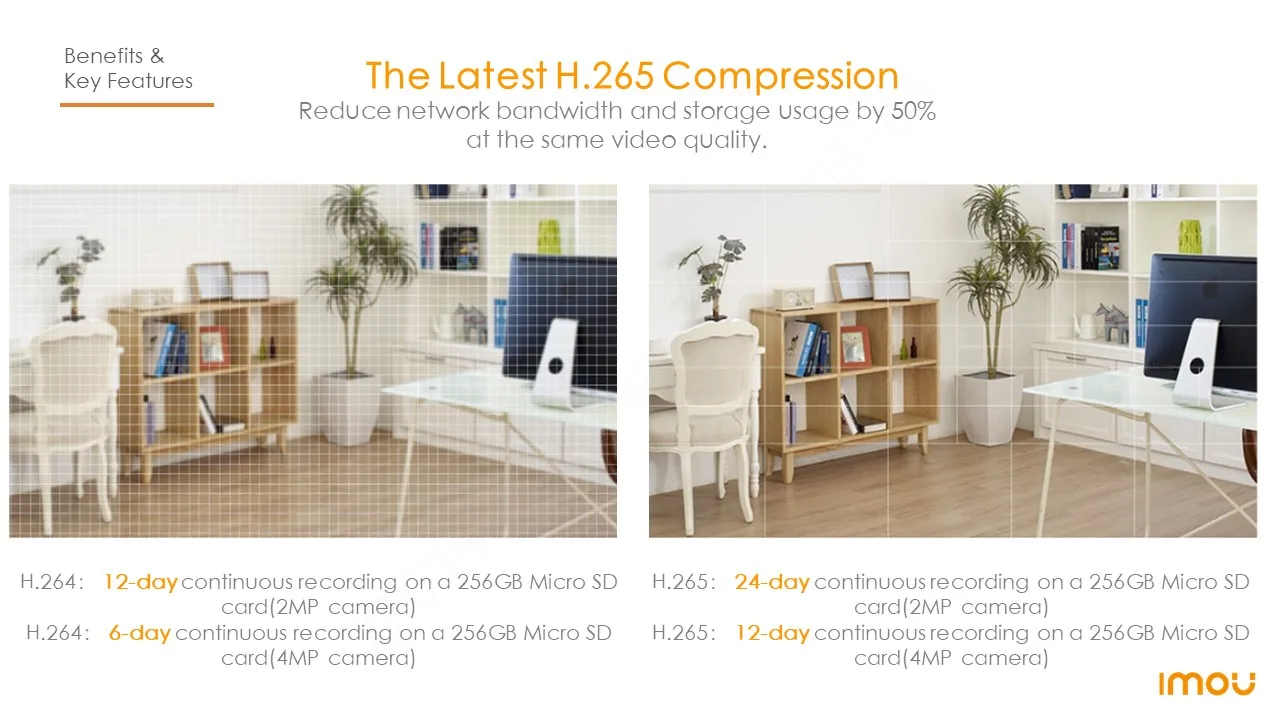 Reduce network bandwidth and storage usage by 50% at the same video quality.