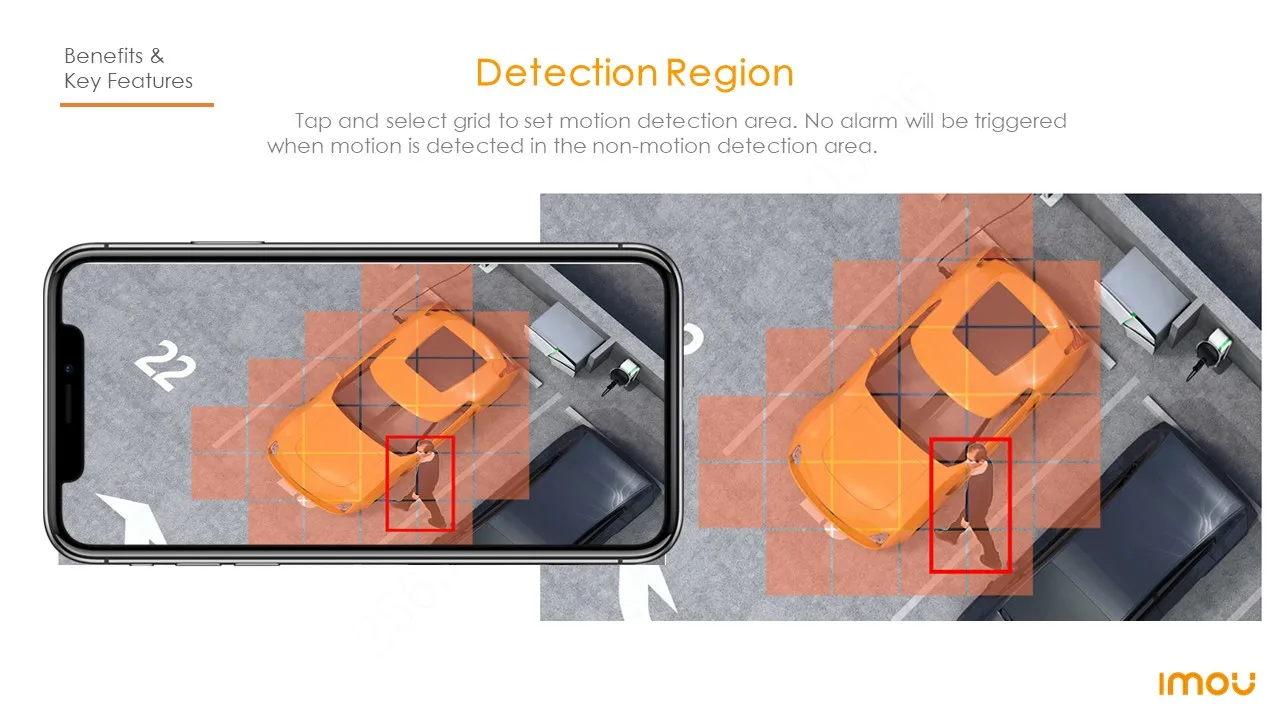 Tap and select grid to set motion detection area. No alarm will be triggered when motion is detected in the non-motion detection area.
