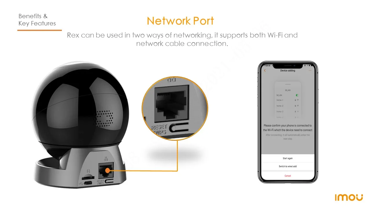 Rex can be used in two ways of networking, it supports both Wi-Fi and network cable connection.