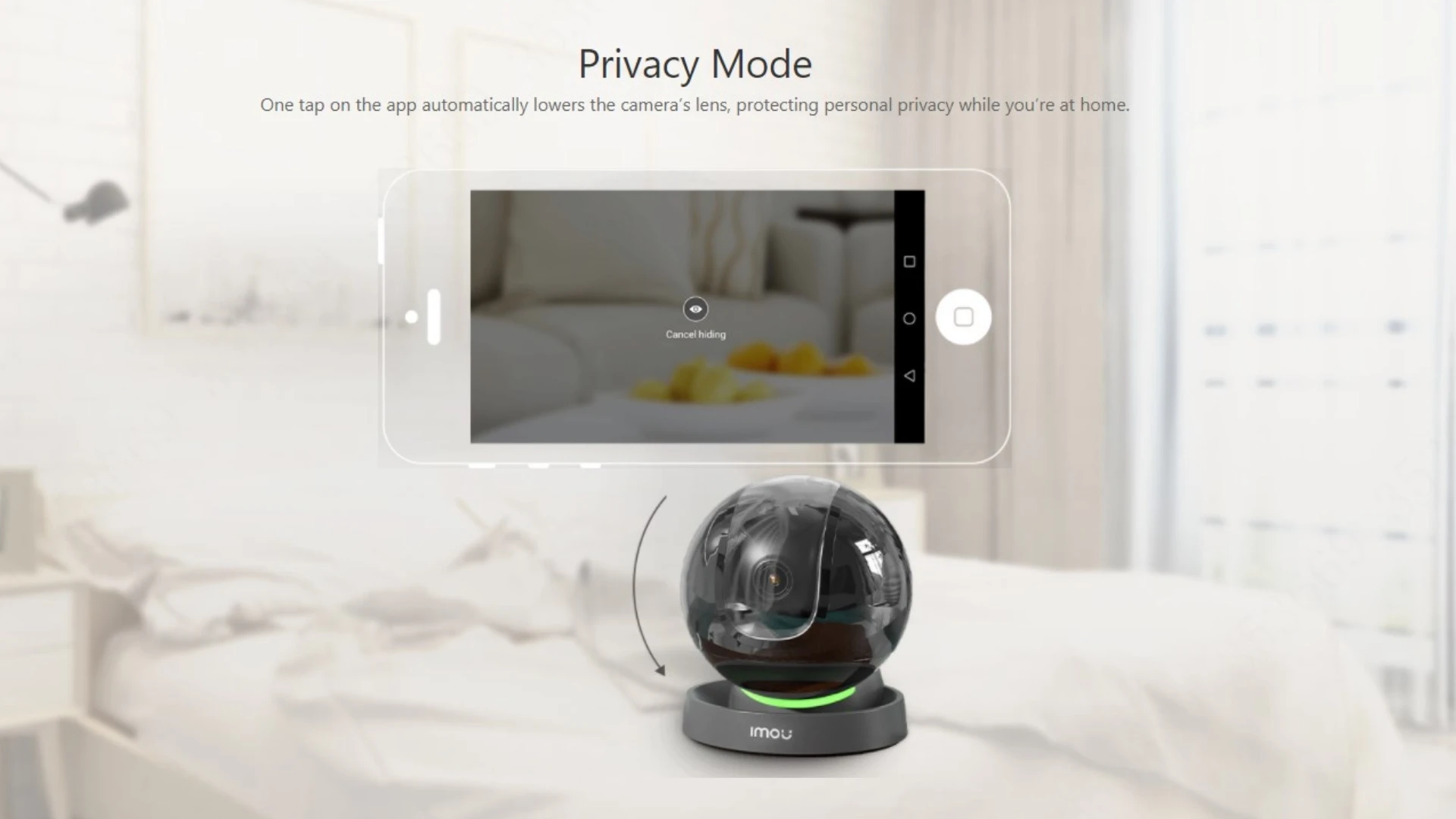 One tap on the app automatically lowers the camera’s lens, protecting personal privacy while you’re at home.