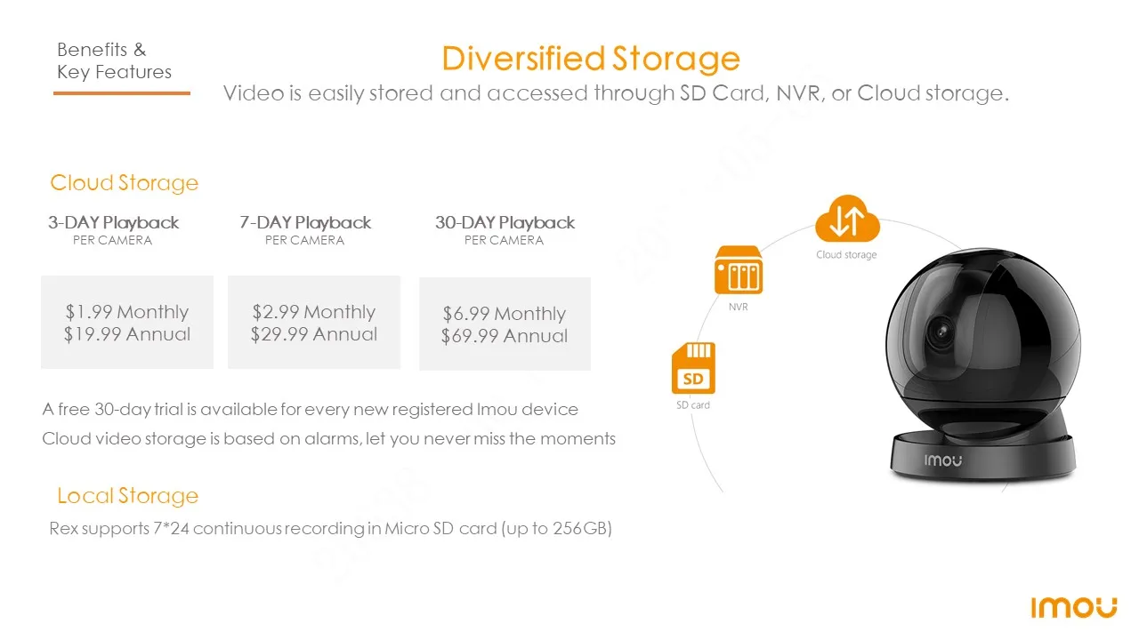 Video is easily stored and accessed through SD Card, NVR, or Cloud storage.