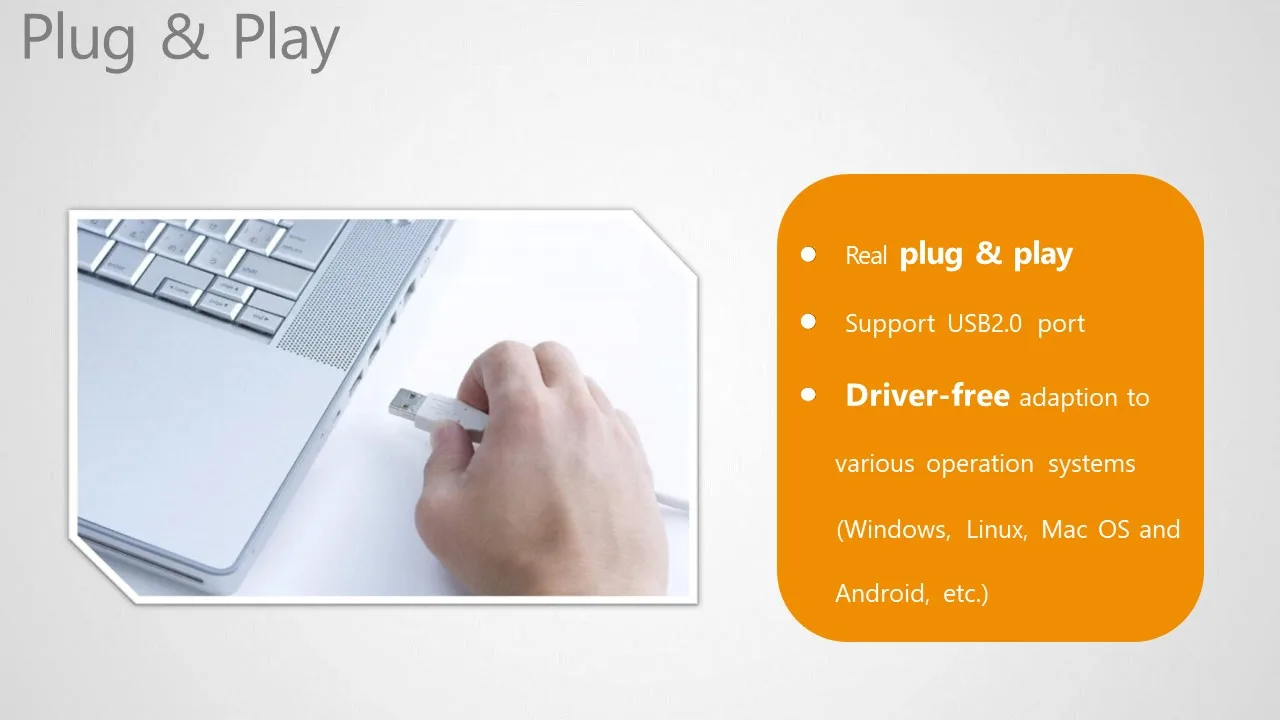 - Driver-free Adaptation for Windows, Linux, Mac OS, and Android