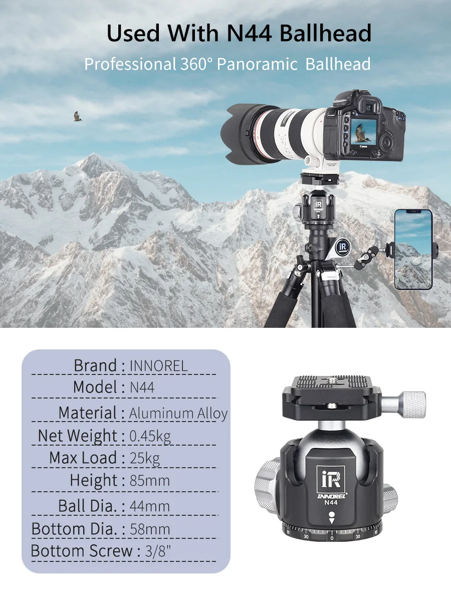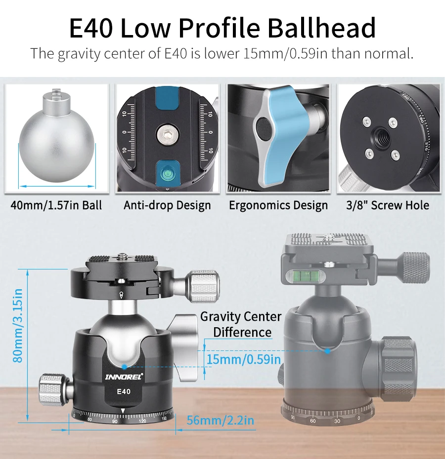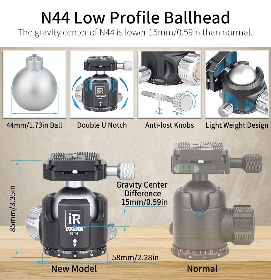 - Stable low-profile ball head: Low center of gravity design, CNC machining, and a large 40 mm / 44 mm ball provide compact, solid support. Three adjustment knobs and two Arca-Swiss quick-release plates enable fast composition changes.