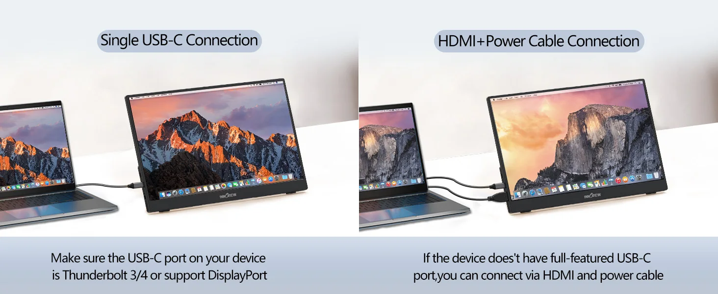 Wide Connectivity – This travel monitor includes two full-featured Type-C ports and one standard HDMI port, offering greater compatibility and durability. Seamlessly switch between multiple devices such as: