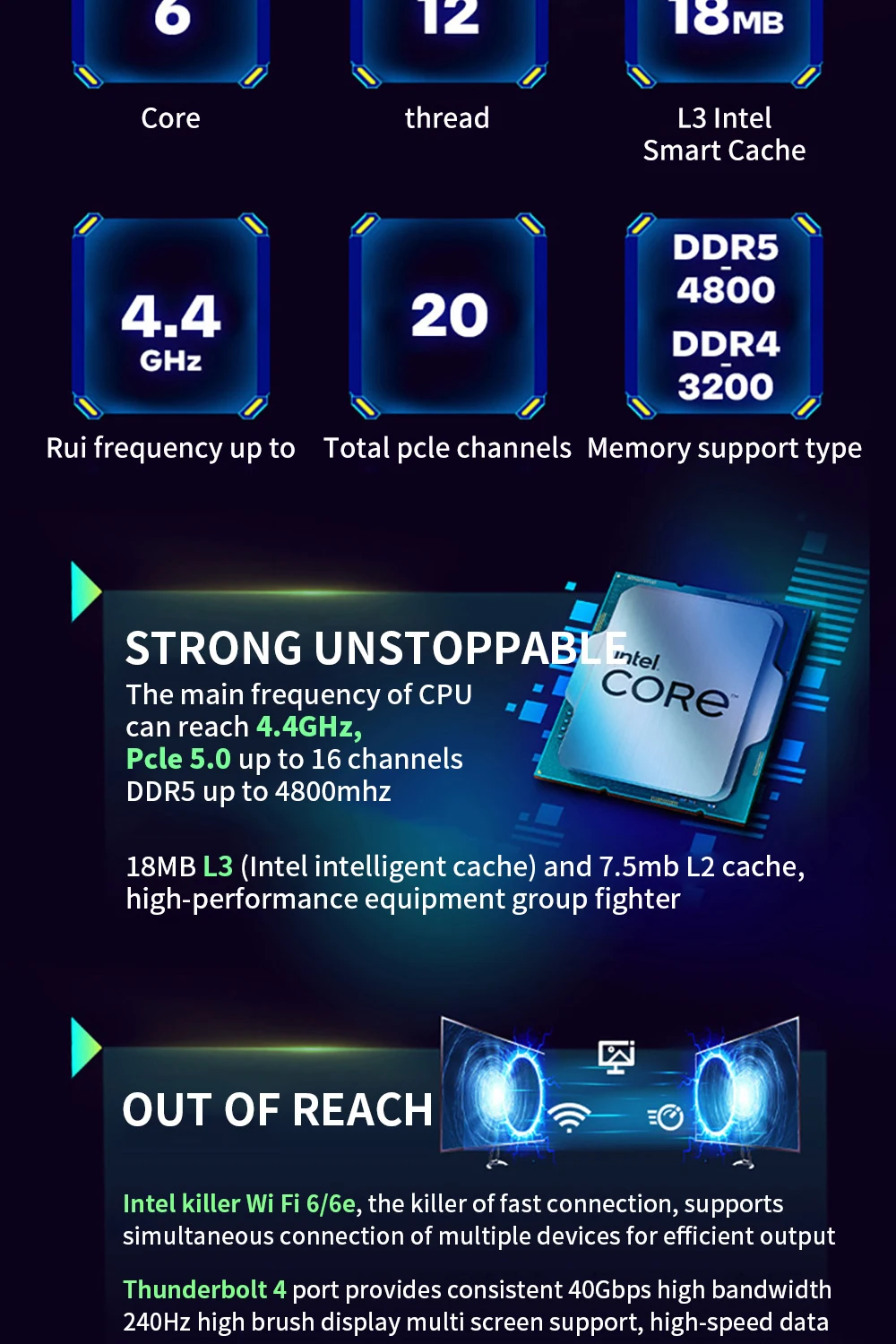 - Memory Controller: Supports DDR4-3200, DDR5-4800 memory