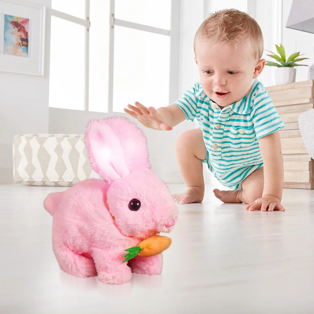 - Lifelike Movements: Experience the charm of a real bunny with the electric plush carrot bunny toy! This adorable toy hops, twitches, and wiggles its ears, captivating both kids and rabbit lovers with its realistic motions.