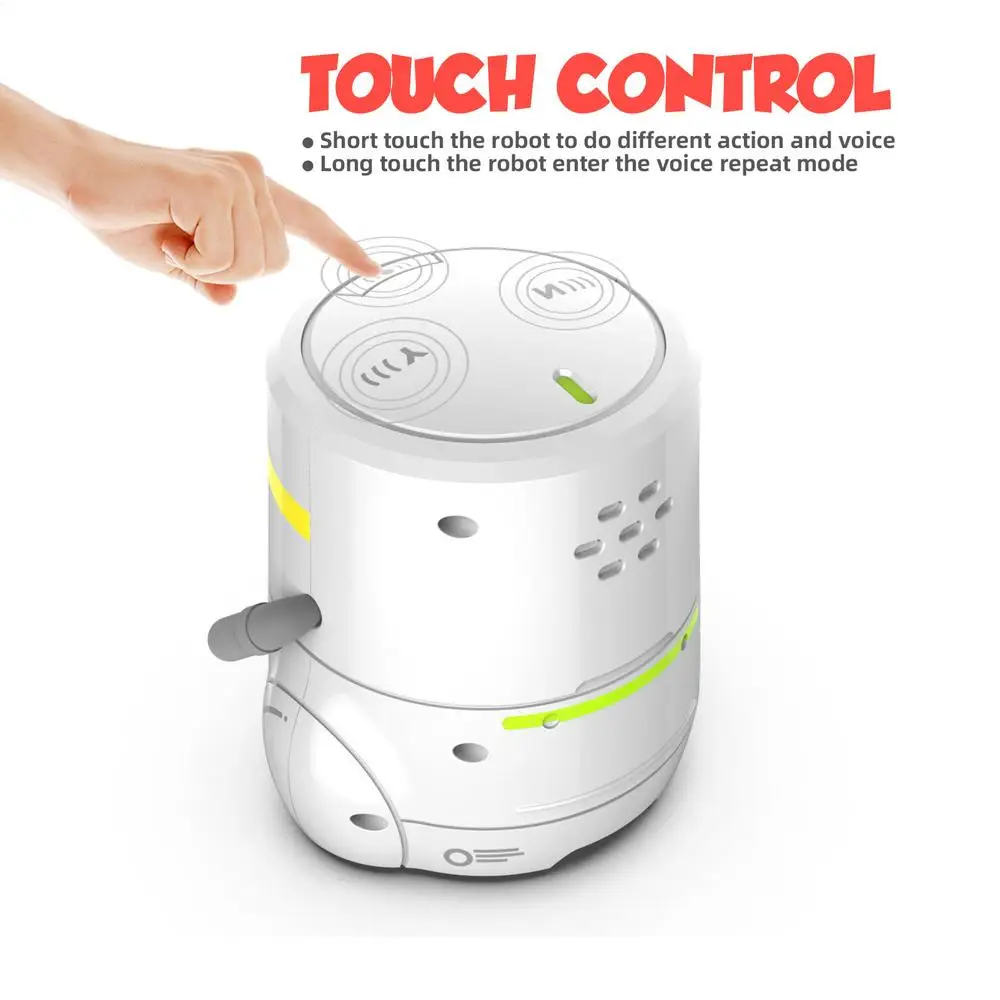 - Touch Sensor: Inspire exploration and fun learning with this versatile robot toy for kids. Featuring a touch sensor and voice control technology, it sings, dances, and repeats phrases. An ideal interactive educational partner for children.
