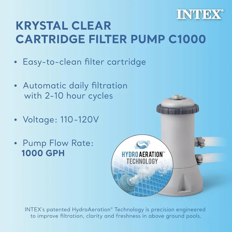 - Krystal Clear filtration: The included pump filters 1000 GPH and incorporates HydroAeration Technology into the cartridge filter pump, improving circulation, filtration, water clarity, and increasing negative ions.