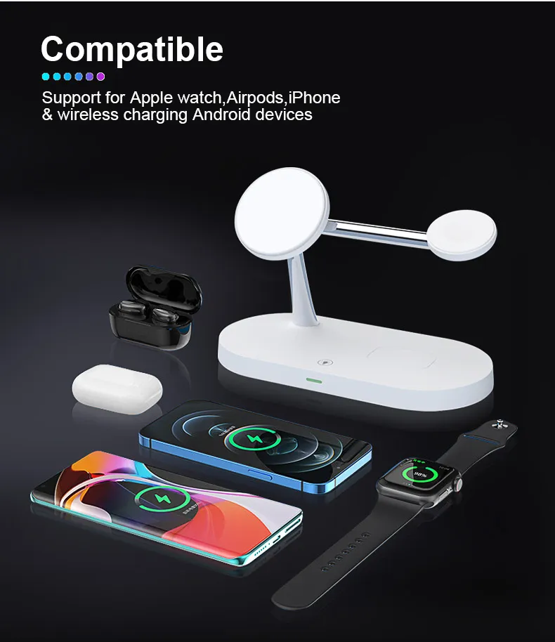 Whether you’re a tech enthusiast or simply looking for a convenient way to charge multiple devices, this 3-in-1 Magnetic Wireless Charger is the perfect solution. It combines style, functionality, and the latest technology to keep your devices charged and ready for use. Say goodbye to cluttered cables and embrace the simplicity and elegance of wireless charging.