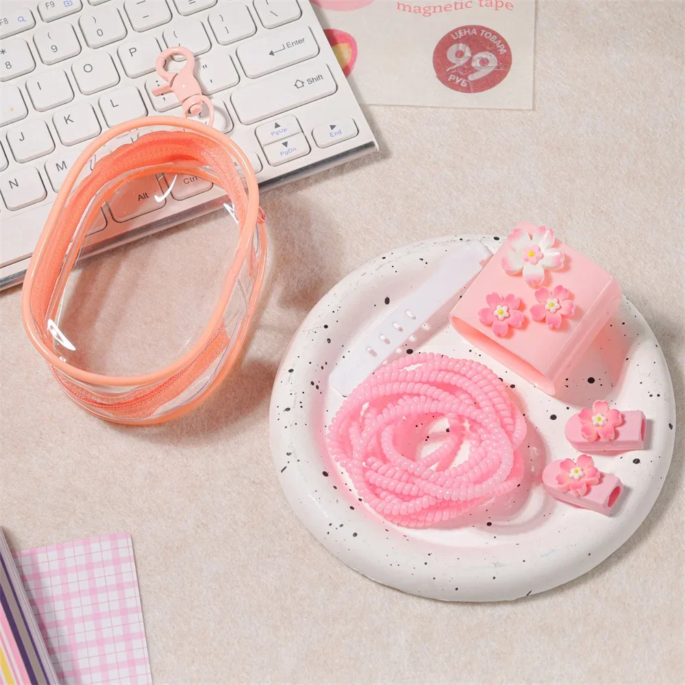 Keep your charging essentials neat, protected, and easy to carry with this transparent mini storage bag with a keychain clip. Based on the product images, this compact organizer is designed to hold small daily accessories such as charging cables, wall plugs, earbuds, and other portable tech items while helping prevent tangles and clutter.