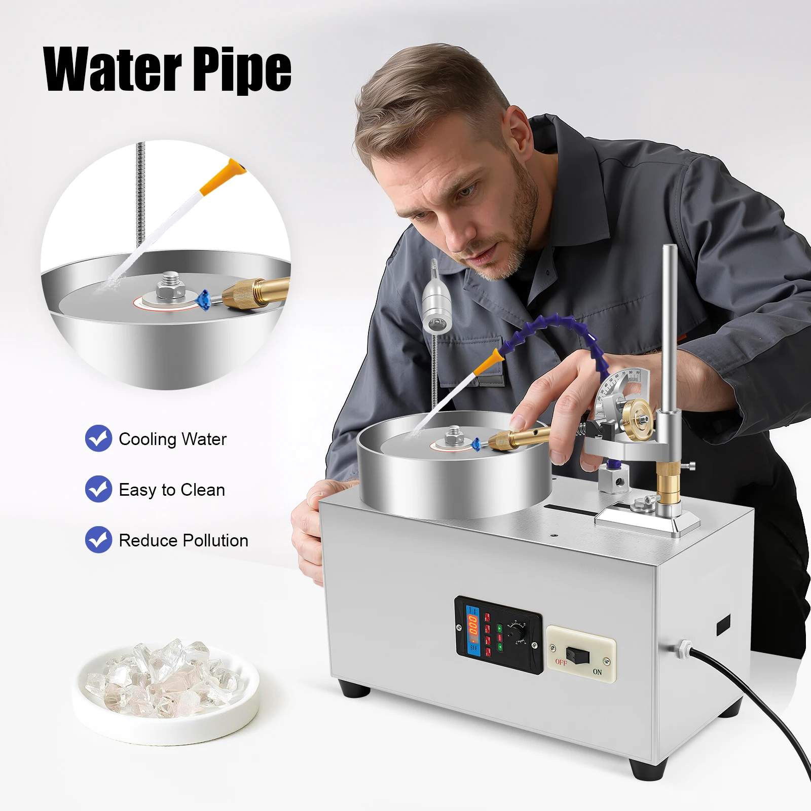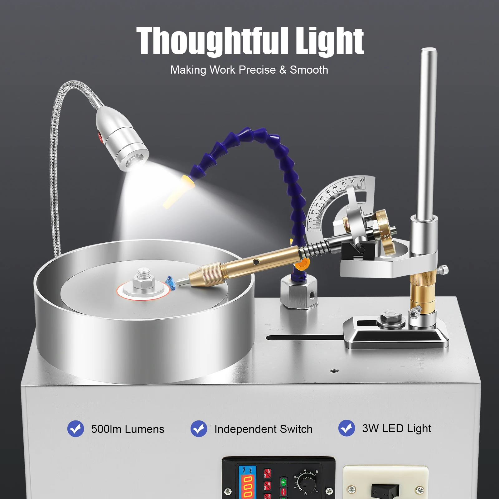 - Adjustable design: Angle and height positioning with fine adjustments support precise gemstone cutting and engraving.