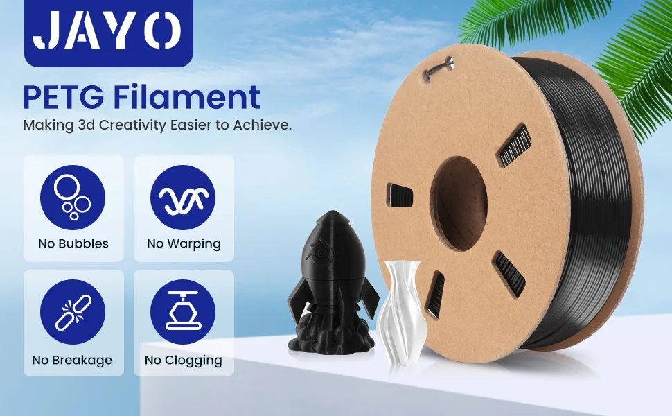 - JAYO PLA 3D Printer Filament: PLA filament is the most basic and most used filament, with no clogs, no bubbles, and no tangles.