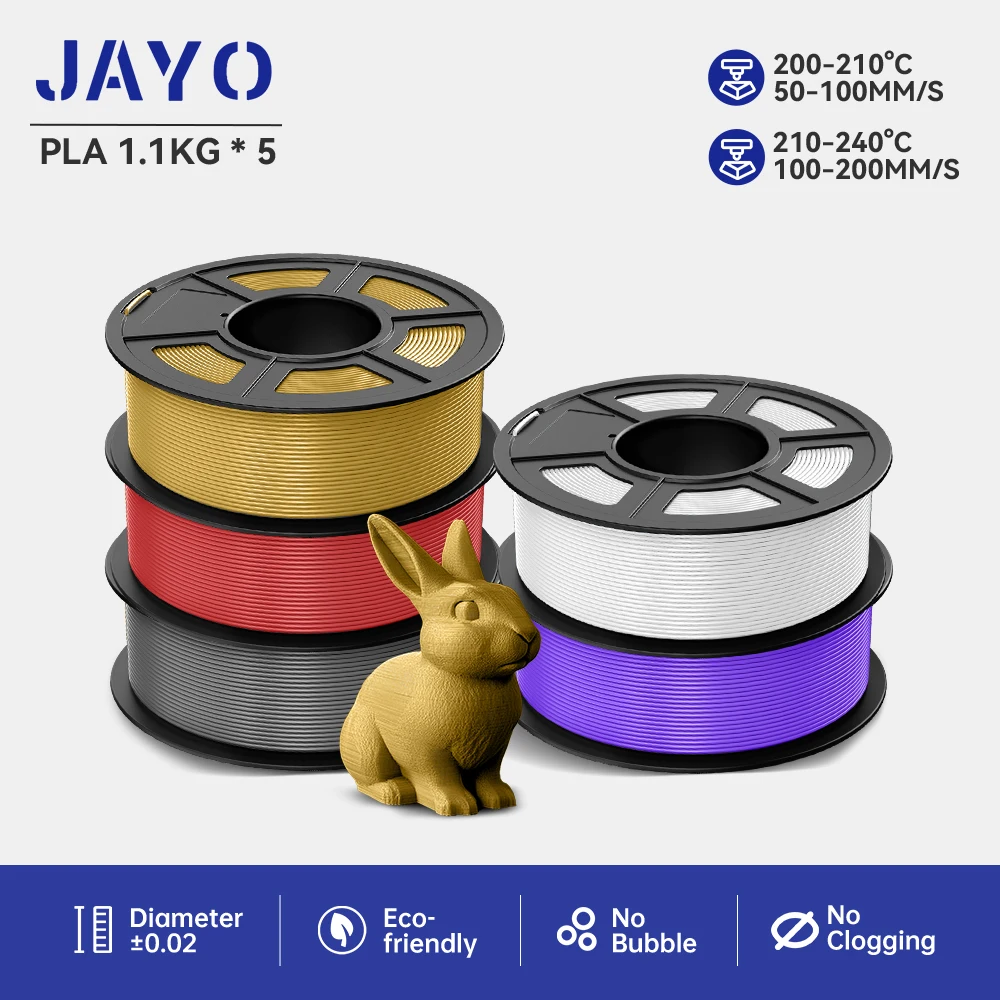 - JAYO PLA 3D Printer Filament: PLA filament is the most basic and widely used filament. It has no clogs, no bubbles, and no tangles. JAYO PLA filament offers good layer adhesion and is very easy to use.