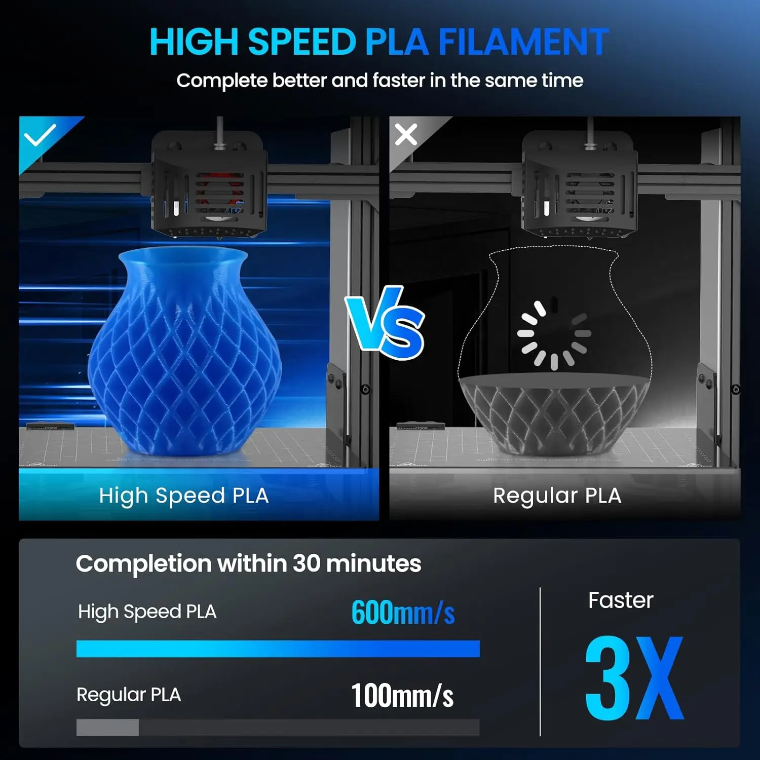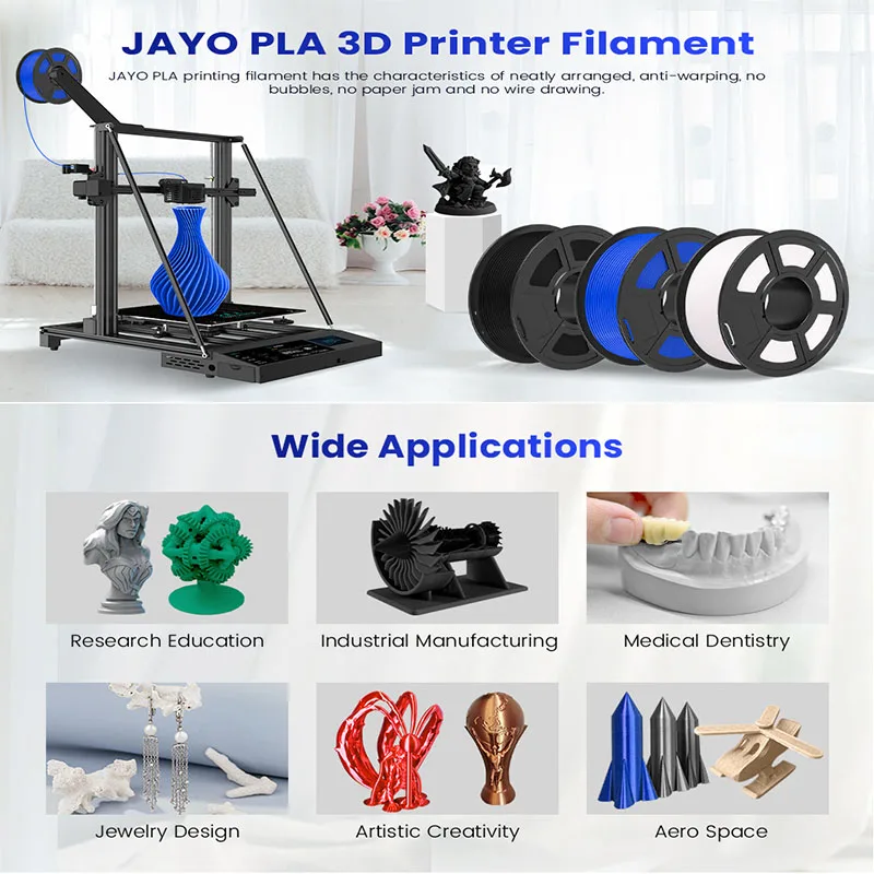 - Print Faster: JAYO high-speed 3D printer PLA filament is designed to turbocharge your printing from slow to swift. Experience a colossal 500% increase in flowability, ensuring smooth printing even at speeds exceeding 250mm/s, without clogs or filament shortages. Bring your ideas to life with high-speed printing, on average, saving 70% printing time.
