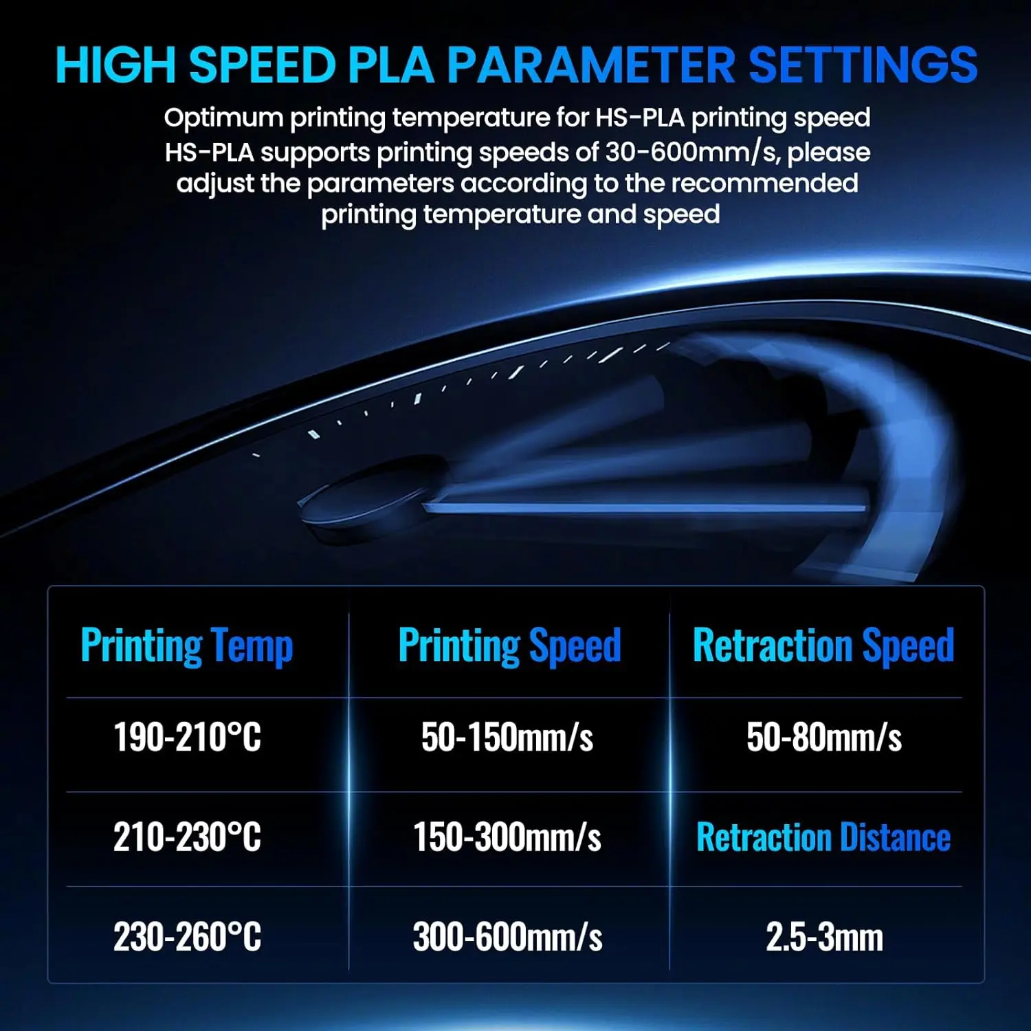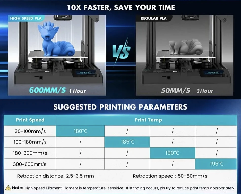 High Speed PLA Filament Parameters: