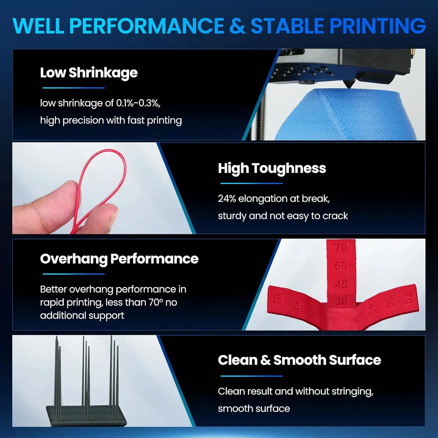 HS-PLA Filament Features & Parameters: HS-PLA Filament Features: