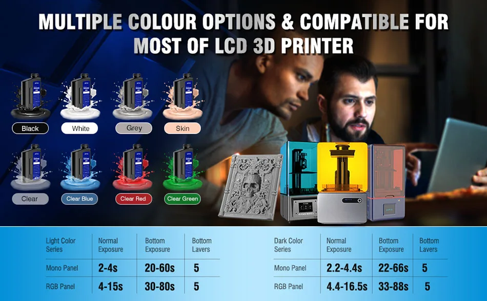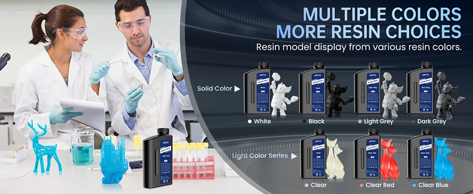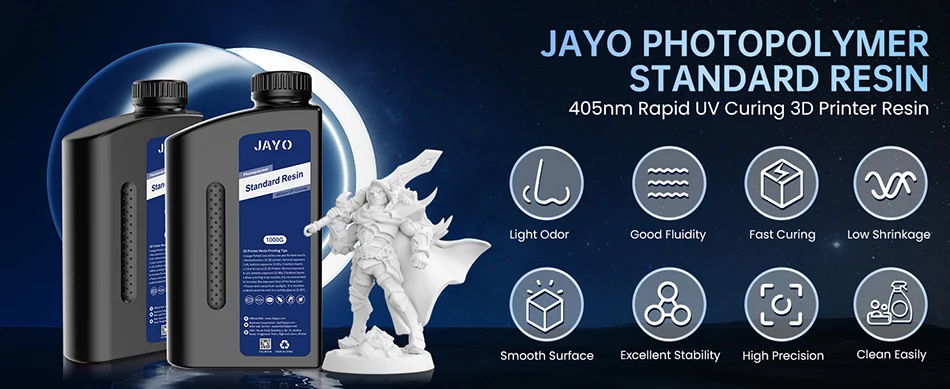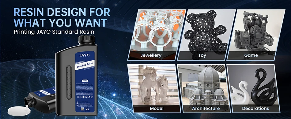 Tested on different 3D resin printers, JAYO Standard Plus resin is suitable for most 2K/4K/6K/8K LCD DLP SLA 3D printers. Whether you are a beginner or an experienced user, JAYO Resin offers you an excellent printing experience.