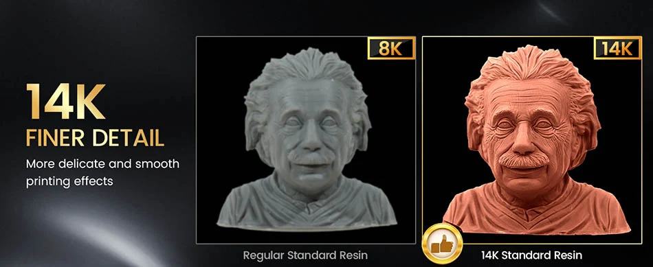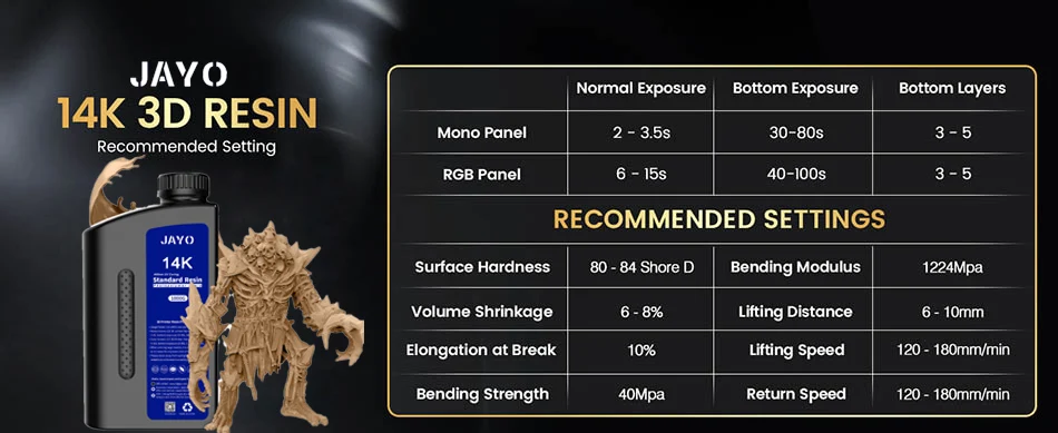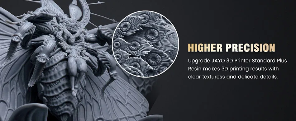 14K Ultra-high Precision Resin: JAYO 14K 3D printer standard resin produces super delicate details on printed resin models, showing excellent results. The matte texture makes the 3D printed resin model more expressive and vivid. It is very suitable for printing figures that need to show rich details.
