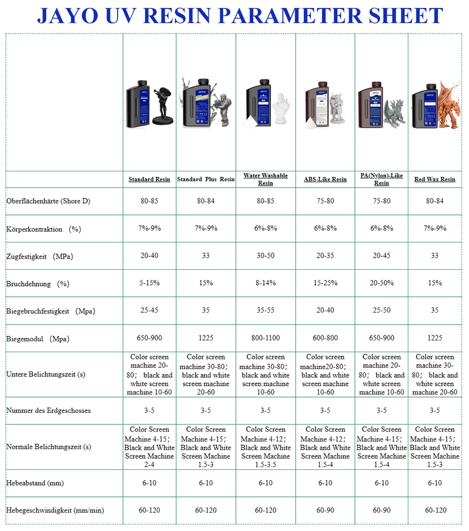 JAYO UV Resin Parameter Sheet