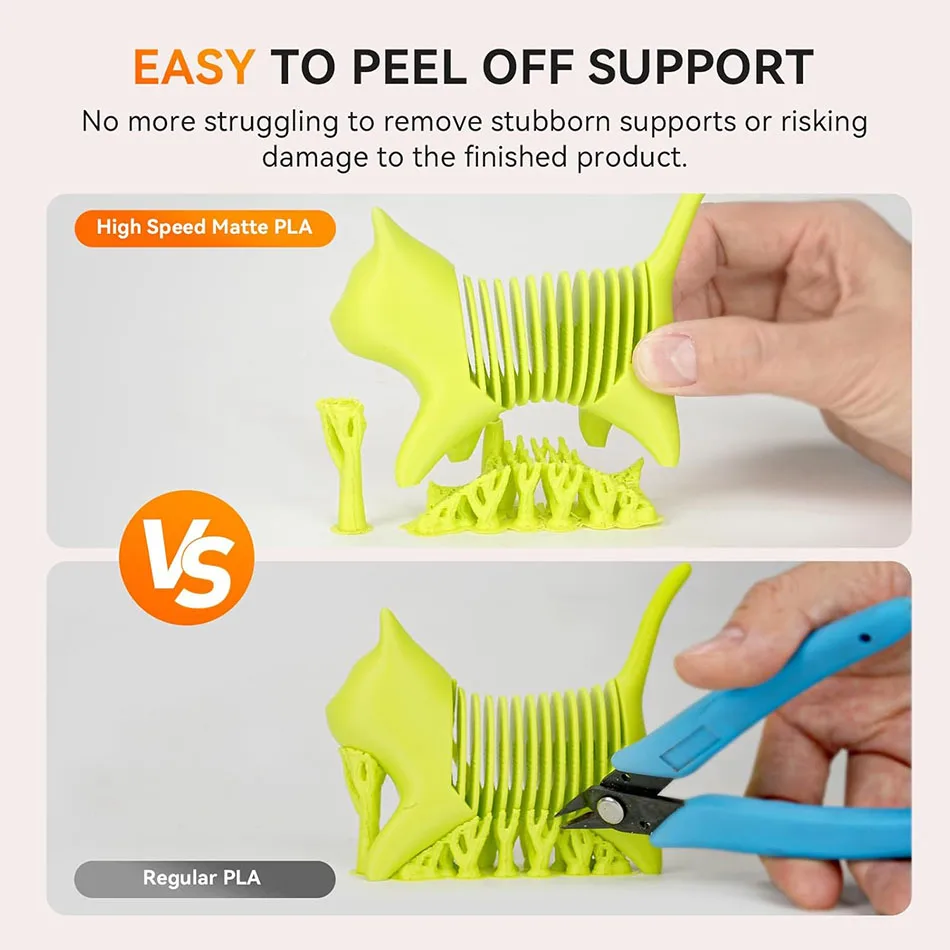 High-speed filaments can be easily torn off, such as printing rafts, brims, and tree supports. Features excellent layer adhesion for stable printing.