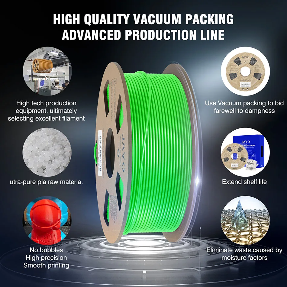 PLA filaments offer incredible ease of printing with optimized print quality, high purity with low shrinkage, and superb layer bonding. This meets your demands for printing projects of functional parts with higher toughness.
