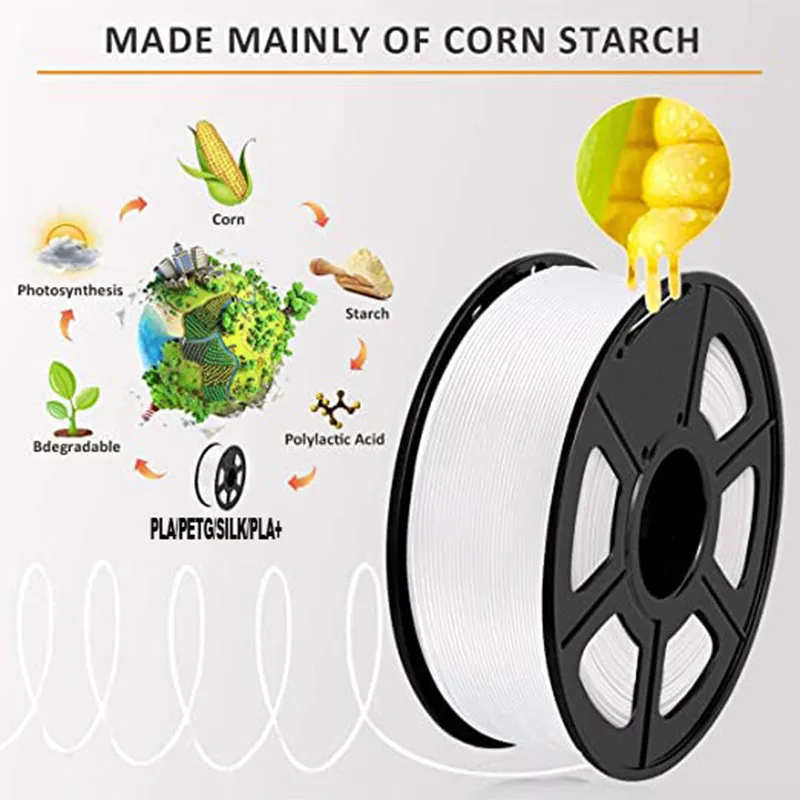 Environmentally friendly, non-toxic, and biodegradable, made mainly of corn starch, and does not harm the environment (Filament: PLA/PETG/PLA+/SILK)