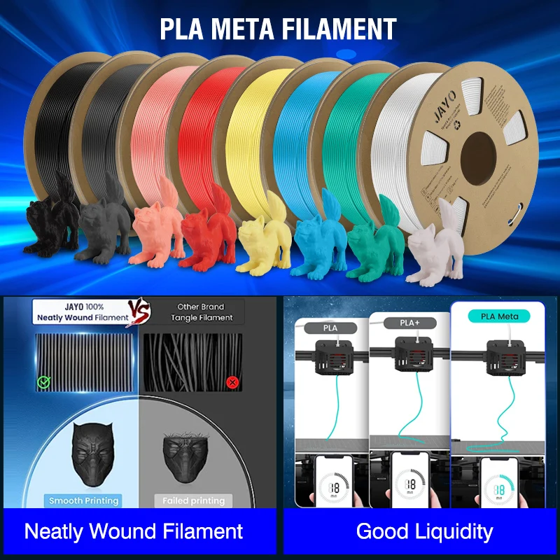 JAYO PLA Filament 1.75mm, Upgraded PLA Meta 3D Printer Filament, Diameter Accuracy ± 0.02mm, Neatly Wound Filament, High Fluidity, Fast Print 3D Printing Filament, 1/1.1kg Spool