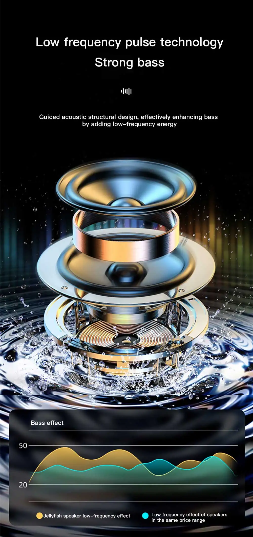 - Low-Frequency Pulse Technology: Features a guided acoustic structural design that effectively enhances bass by adding low-frequency energy.