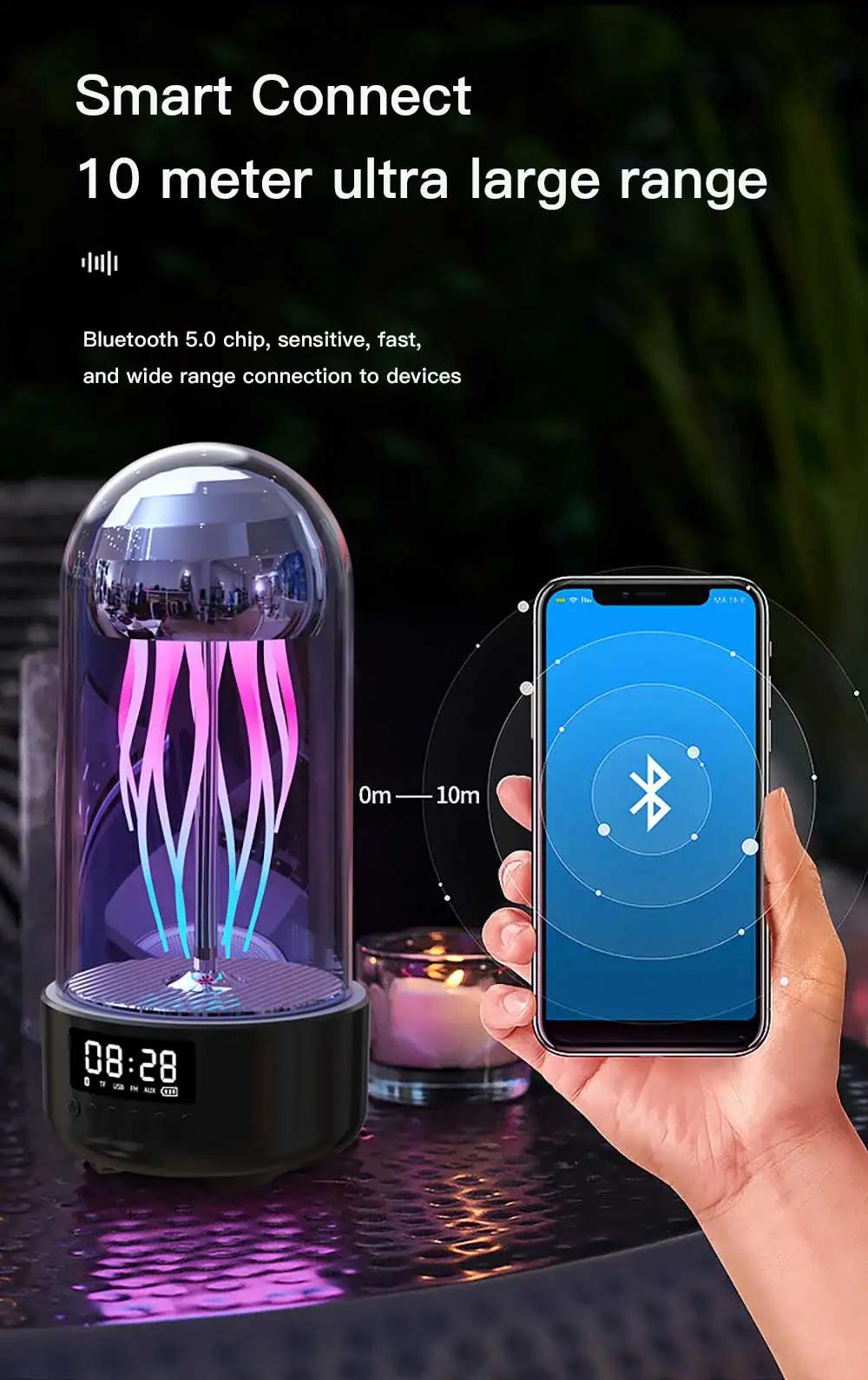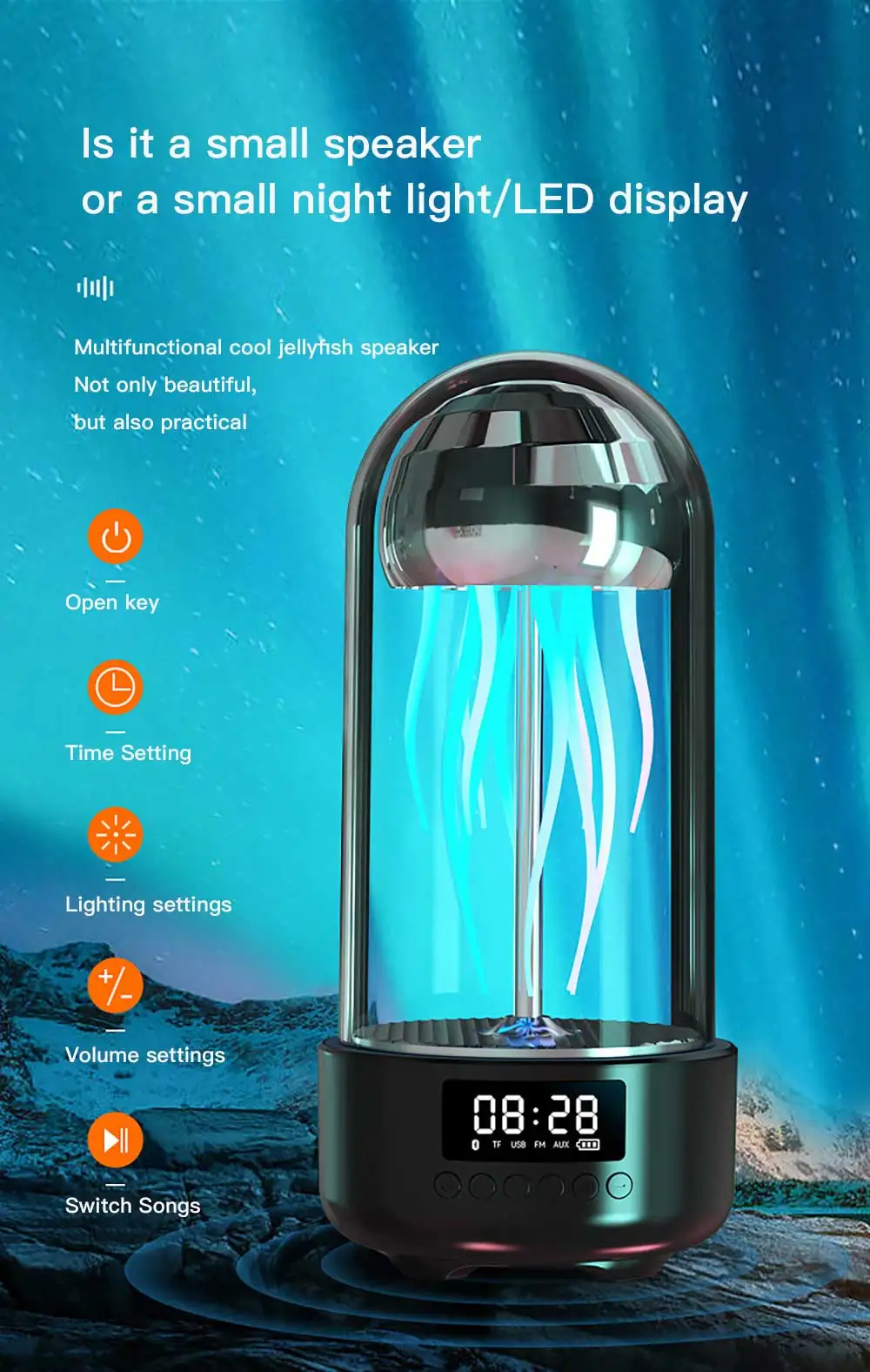 - LED High-Definition Display Screen: A multifunctional small speaker that displays speaker/night light/time/battery information.