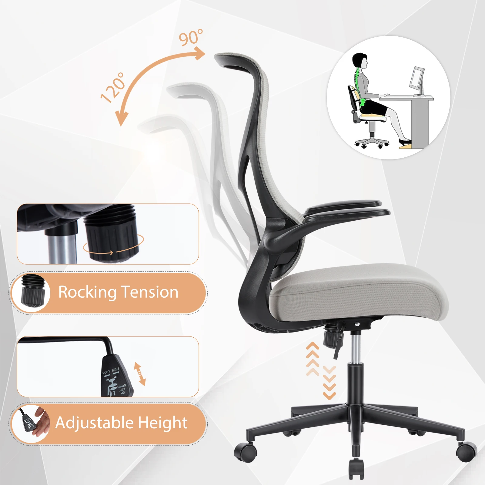- Height Adjustable: The pneumatic height adjustment feature allows you to easily adjust the chair to your preferred height, providing better alignment with your desk and helping to maintain ergonomic comfort.