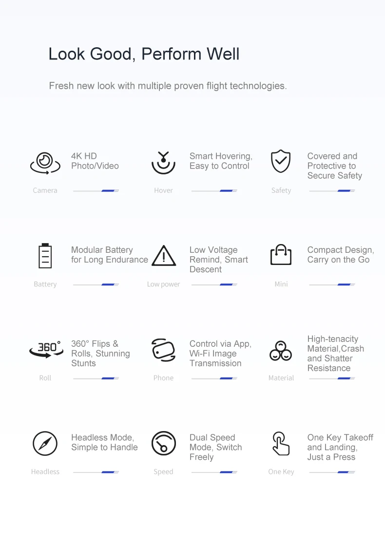 - Headless Mode: Orients the quadcopter’s flight based on the controller, eliminating concerns about the drone going out of control.