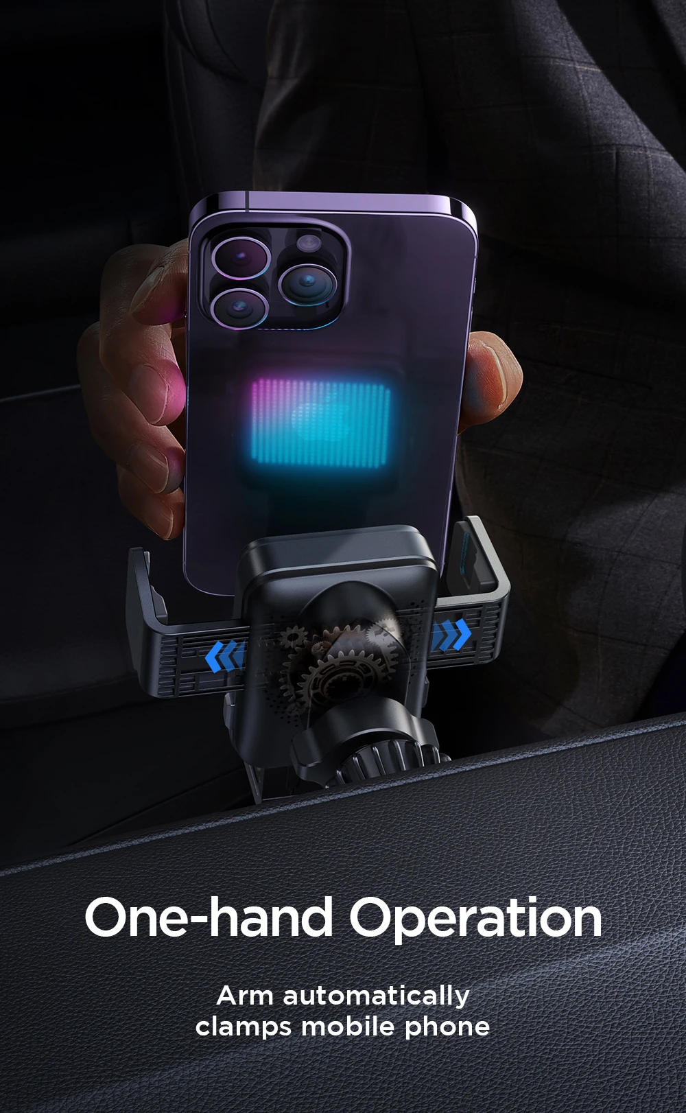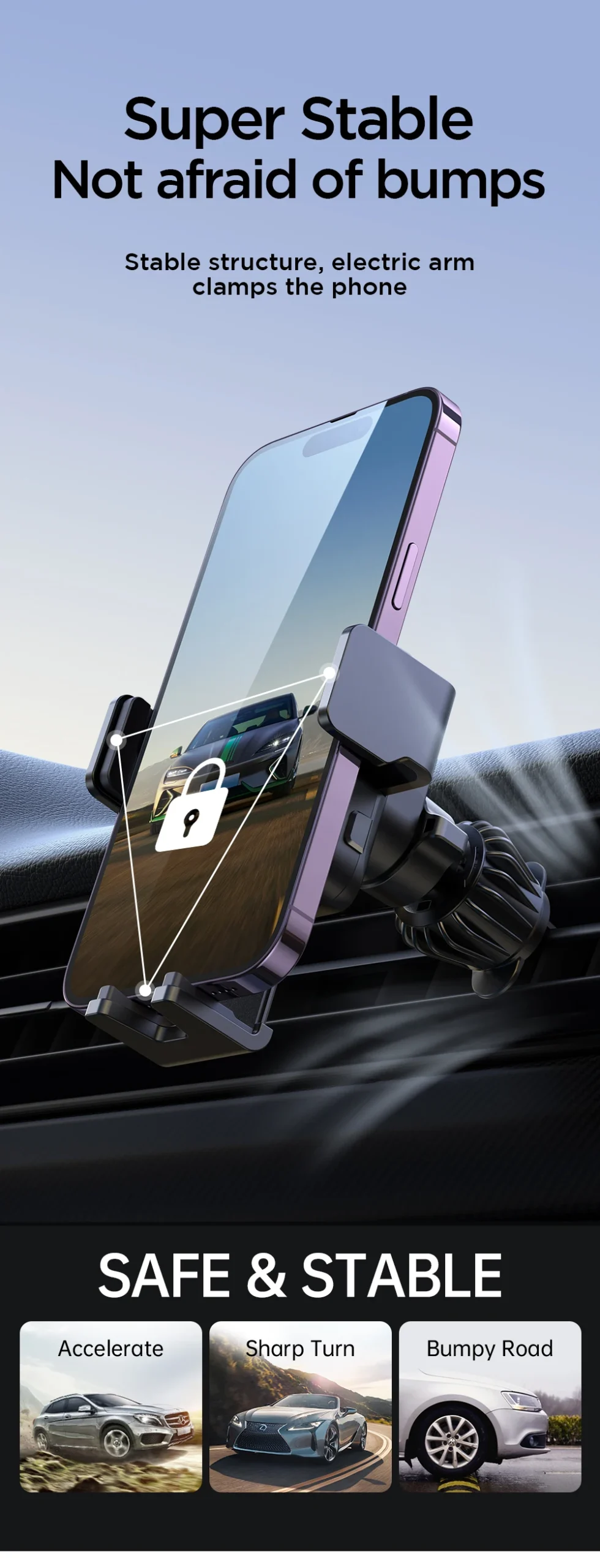 Effortless Operation: This car charger holder simplifies the charging process. Simply slide your phone in, and the charger automatically senses, clamps, and begins charging. It’s designed to provide a stable hold, ensuring your phone stays secure even on rough roads or during sharp turns.