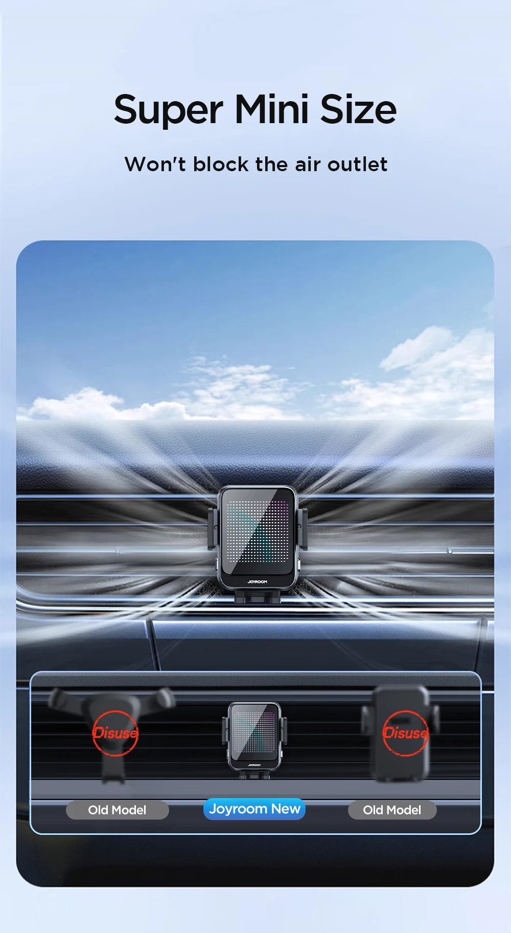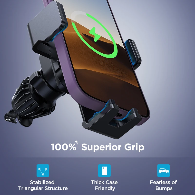 Compact and Stylish Design: The ZS341 stands out as one of the smallest wireless car chargers available, ensuring it doesn’t occupy much space or block your vent. Its compact size is complemented by an eye-catching starlight design, offering both functionality and aesthetics.