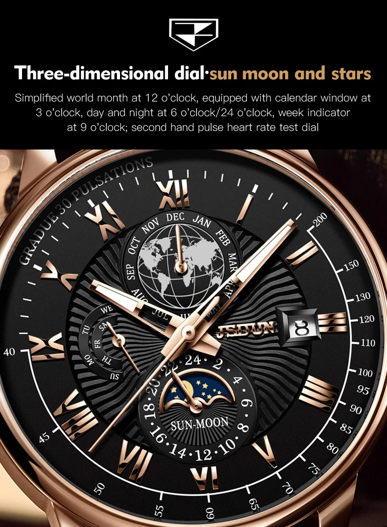 JSDUN Moon Phase Luxury Watch – Waterproof Timepiece