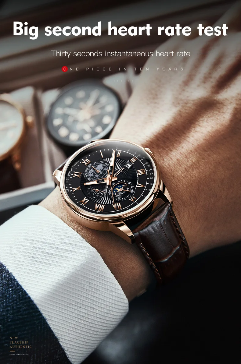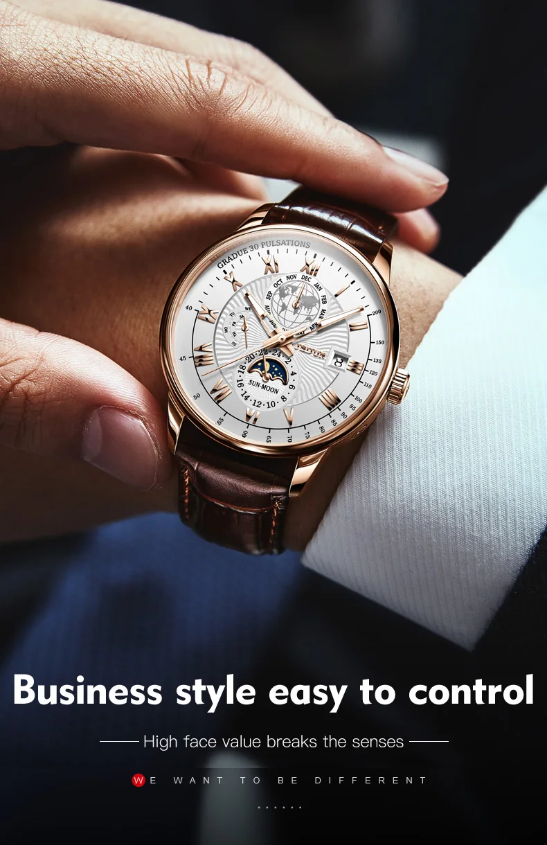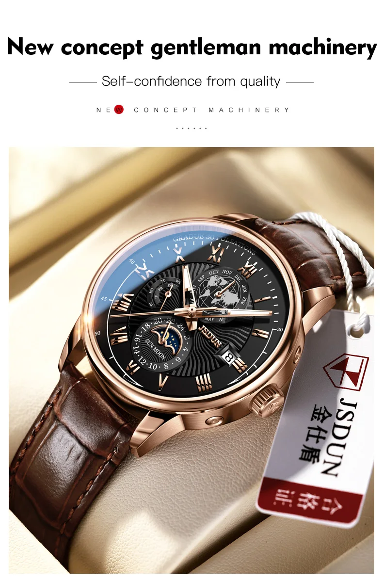 In a world where fashion and function converge, the JSDUN Men’s Moon Phase Automatic Mechanical Wristwatch stands out as a symbol of luxury and sophistication. It’s not just a timepiece; it’s a statement of elegance and a testament to the craftsmanship that goes into the creation of a truly luxurious watch.