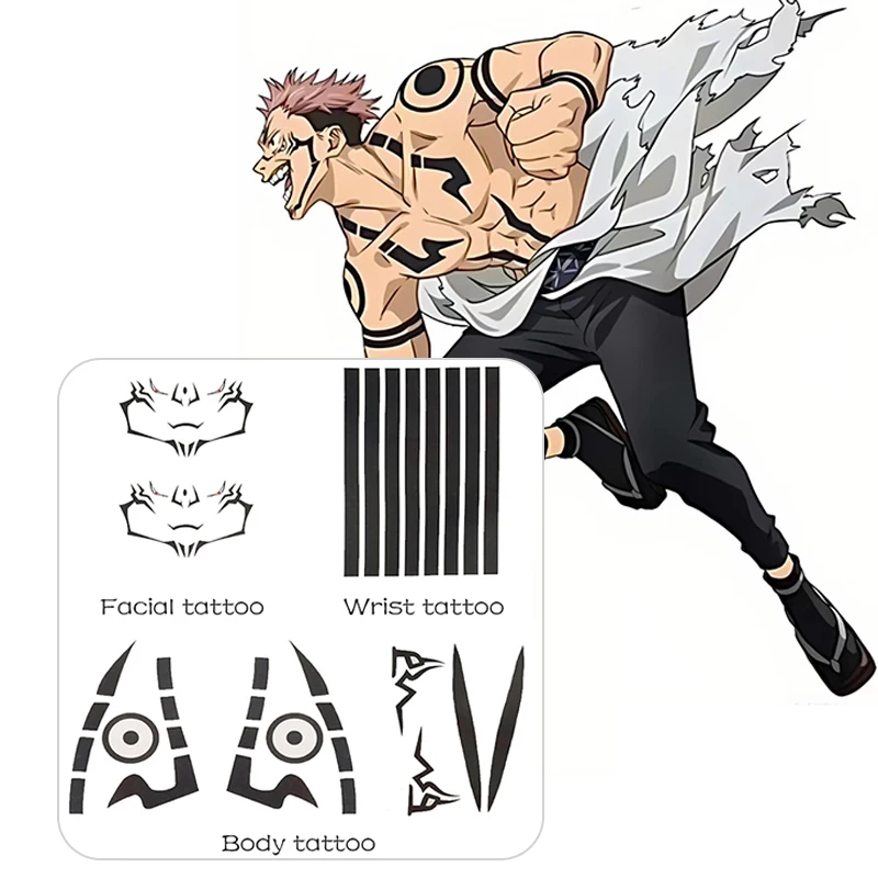 Our Ryomen Sukuna Tattoo Stickers feature vibrant, lifelike designs that capture the essence of the character. Whether you’re attending a cosplay event, a costume party, or just want to show off your love for “Jujutsu Kaisen,” these stickers are sure to turn heads.