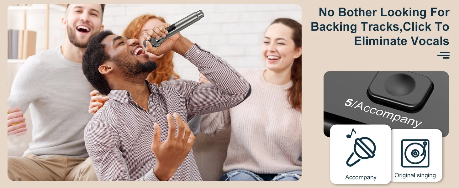 Wireless Anti-Feedback Microphones, Crystal Clear Audio: Equipped with wireless 2.4G Bluetooth microphones with APTX HD decoding, enjoy studio-quality sound transmission without latency. Advanced noise reduction eliminates over 95% of interference, ensuring crystal-clear voice reproduction during karaoke or live interactions. Sing like a pro, free of echoes or distortions.
