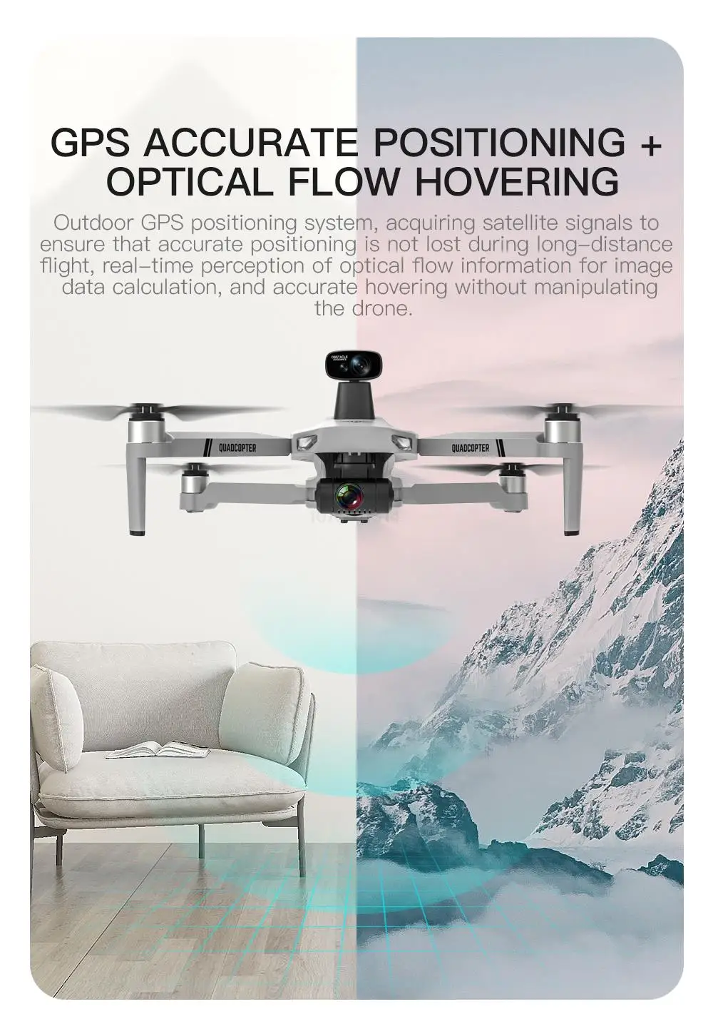 - Dual Mode Operation: The drone operates in both GPS mode and Optical Flow mode.