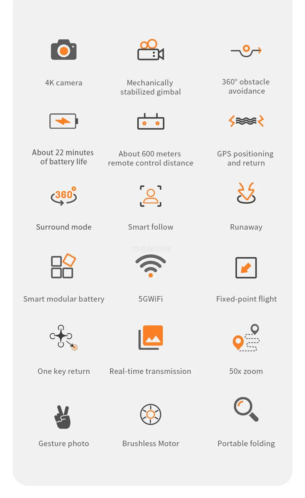 - Gesture-Controlled Photography: Recognizes photographic gestures within 1-3 meters of the drone.