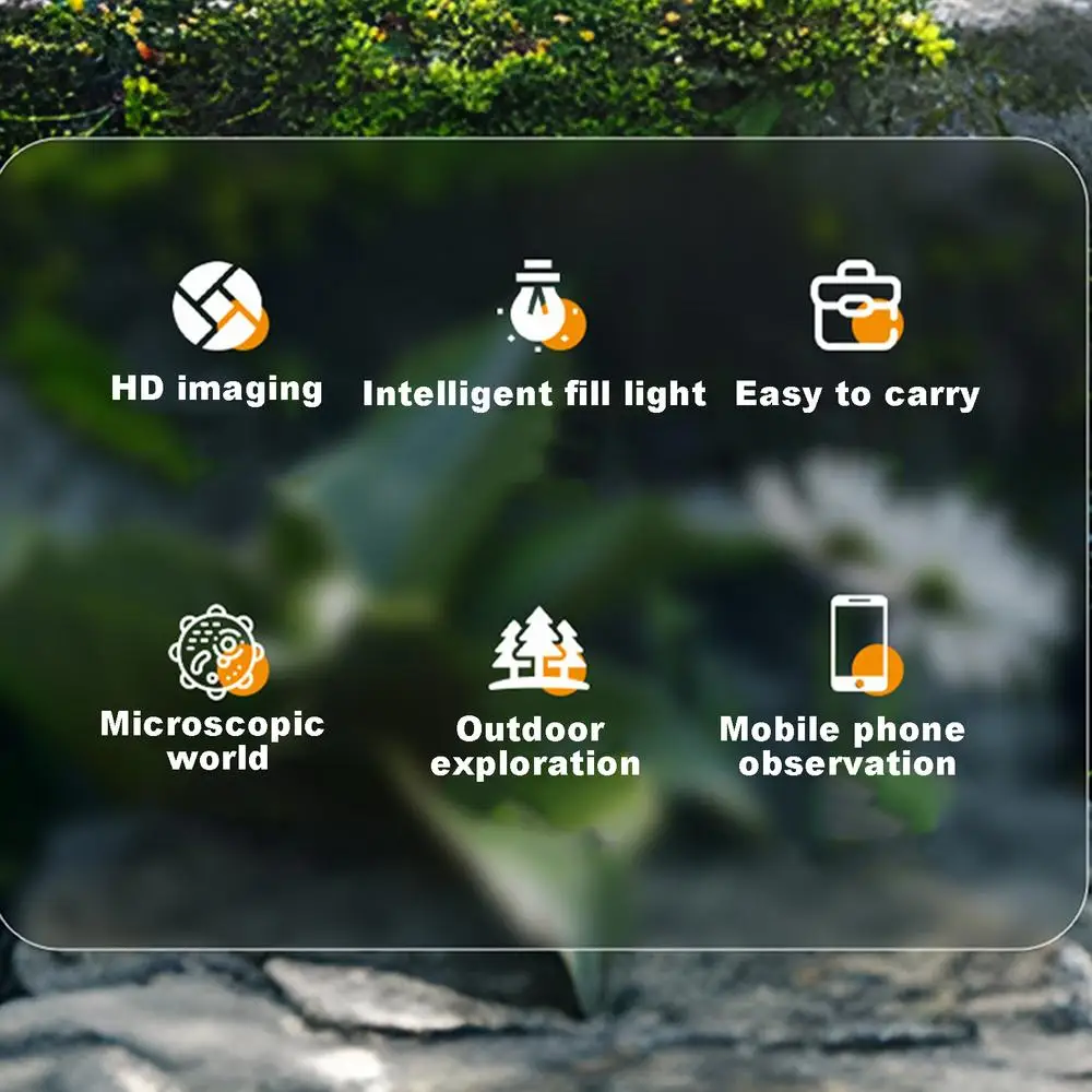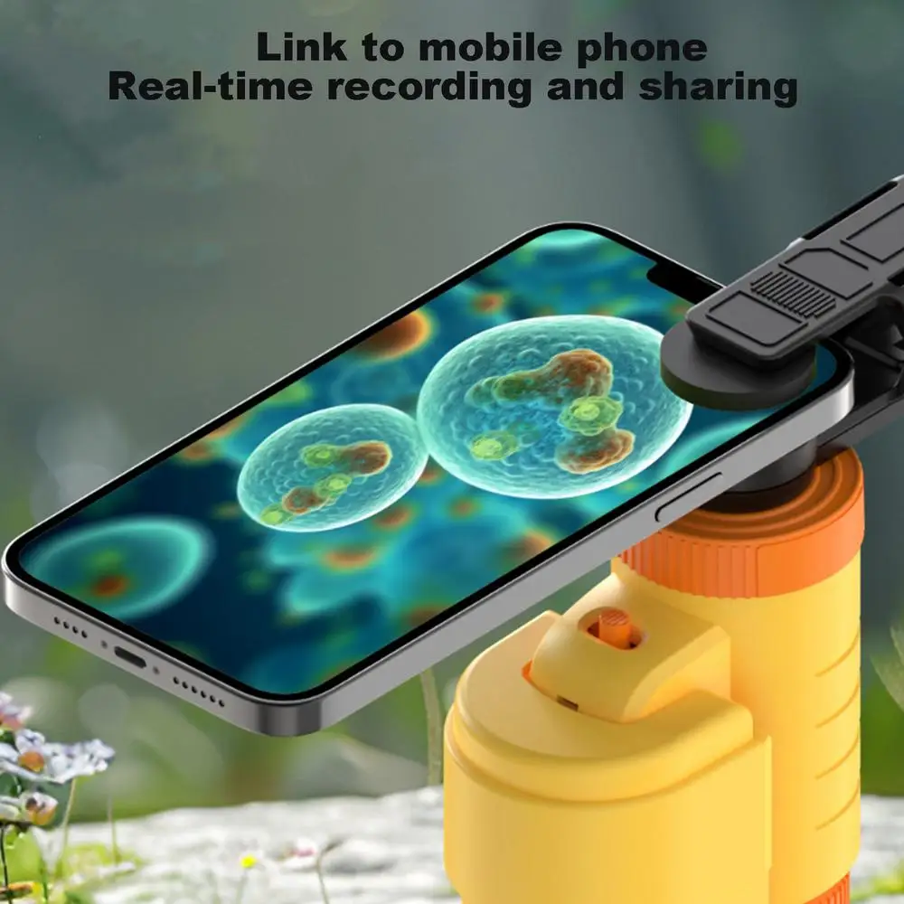 - Handy to Use: With a unique mobile phone clip, this microscope makes it easy to capture and record microscopic details. Simply attach your phone and start exploring.
