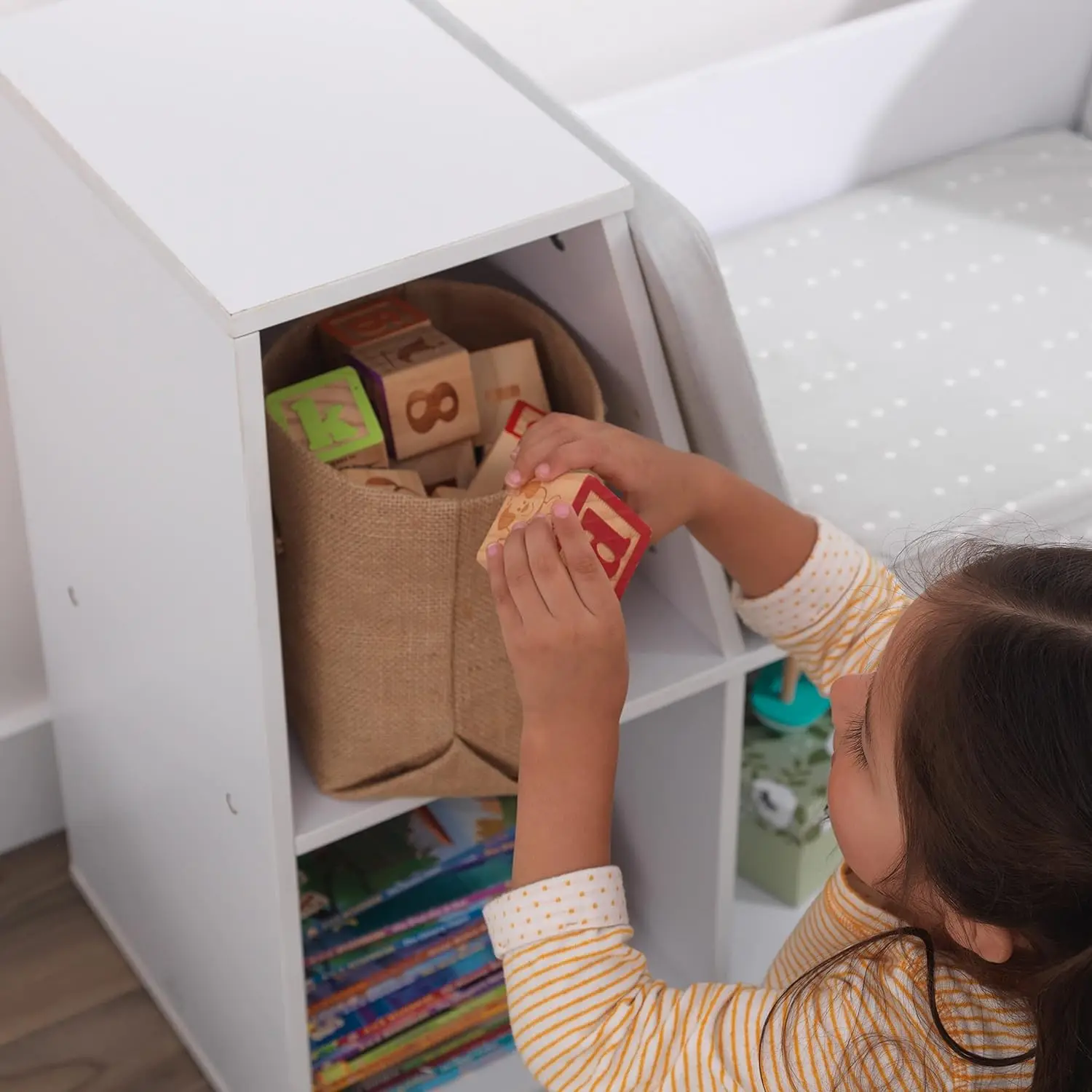 Ample Storage Solutions: Offers six spacious storage compartments ideal for organizing books, toys, and other belongings. The matching side shelves are specially designed to accommodate tall picture books easily.
