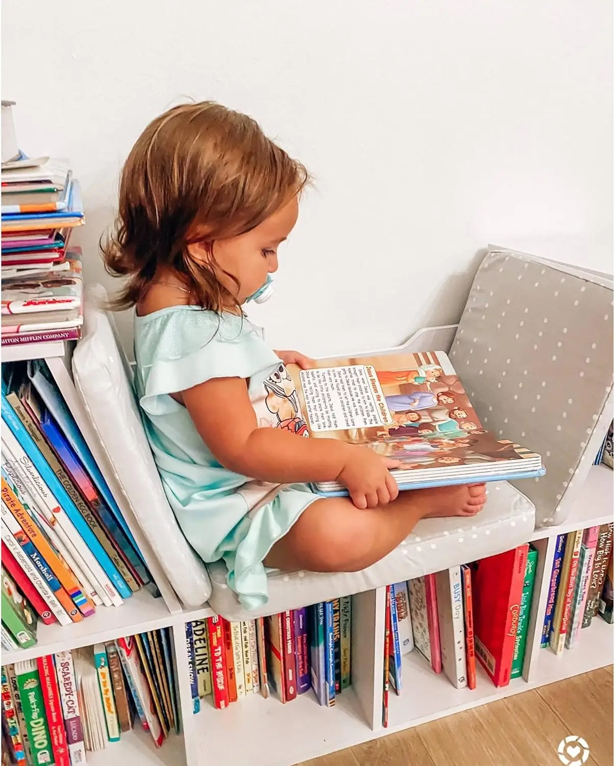 Comfortable Reading Nook: Includes three soft pillow cushions secured with self-adhesive strips along the angled backs, creating a snug and inviting space for children to relax and enjoy their favorite books.