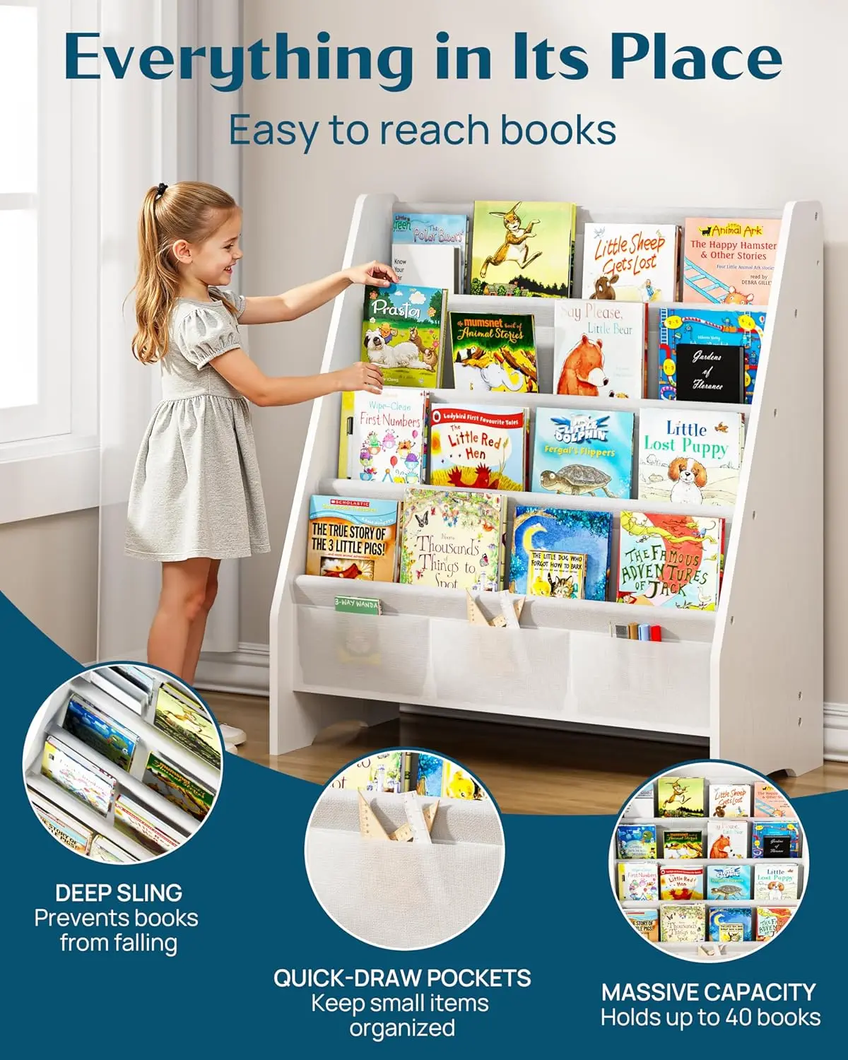 5. Versatile Fit for Modern Spaces: Seamlessly blends into modern nurseries, bedrooms, playrooms, or classrooms as a toddler bookshelf or book display unit. It transforms any area into an inviting reading corner that children will adore while providing functional benefits appreciated by adults.