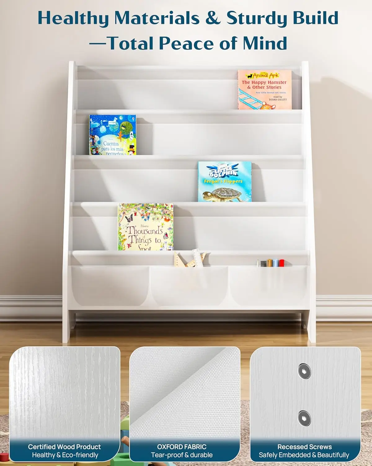 4. Easy Assembly and Low Maintenance: This baby bookshelf comes complete with all necessary hardware and step-by-step instructions for fast, stress-free setup. Its simple wipe-clean design is built for daily use, making it ideal for busy parents, teachers, and caregivers who need practical book storage that supports reading routines without occupying excessive space.
