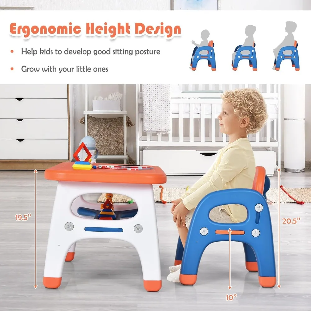 - Multipurpose kids activity table set: This toddler table and chair set can be used as a study desk, activity table, or dining table. The tabletop measures approximately 31 in x 19.5 in (L x W), providing plenty of space for drawing, building blocks, homework, crafts, meals, and reading.