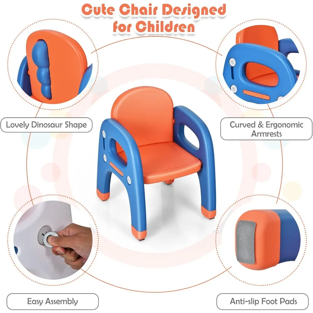 - Ergonomic dinosaur themed chair: The widened seat and back, curved armrests, and child friendly seat height help encourage good sitting posture. The backrest features a fun dinosaur spine shape that looks adorable and unique, sure to impress kids.