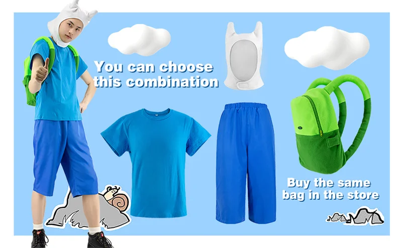 Kids Finn Bunny Ear Cosplay Hat with Backpack